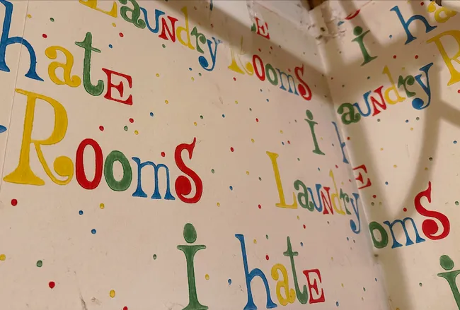This photos is of some wallpaper that was in a house we looked at for some relatives. The room was supposed to be a kitchen, though it only had a sink in it and no windows. Next to the sink was an enclosed space that housed the water heater, and on the walls for it was this wallpaper. It was amazing. Nobody is buying this house.